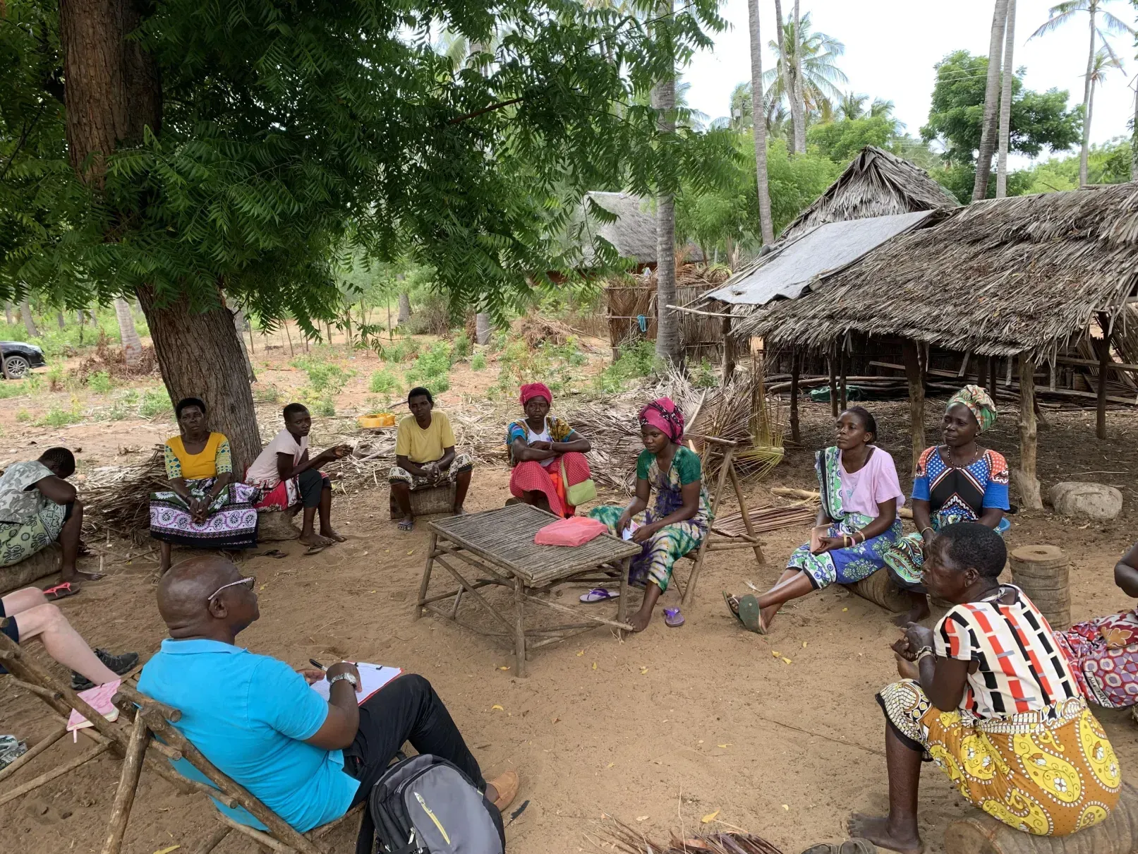 A close-knit group, the members meet at the homestead of their village leader. They enjoy working alongside each other weaving makuti (dried palm fronds) for thatching roofs. The group has a part share in a water tank providing water supplies to their local community. The group has welcomed a new member who has the educational background to help them with their shares and savings. The members are happy in their work and aim to have a small building for the secure storage of their makuti so that it does not rut in the rains.